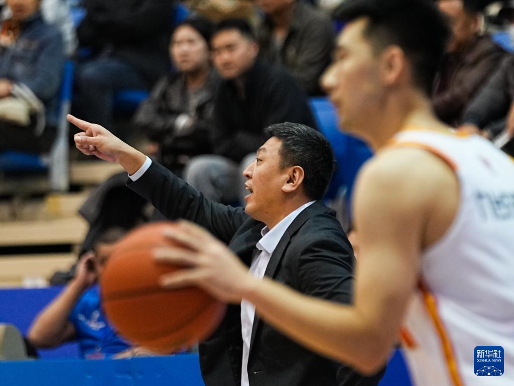 11月13日,浙江稠州金租隊(duì)主教練王世龍?jiān)诒荣愔兄笓]。新華社記者 朱崢 攝
