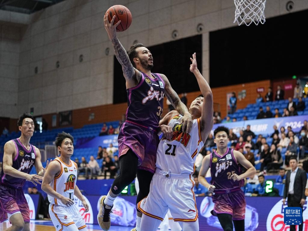 11月13日,浙江稠州金租隊(duì)球員劉澤一(右)在比賽中突破。新華社記者 朱崢 攝