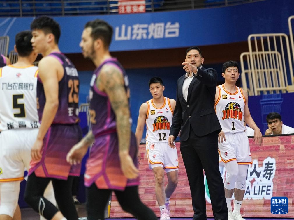 11月13日,吉林九臺農(nóng)商銀行隊(duì)主教練鐘誠在比賽中指揮。新華社記者 朱崢 攝