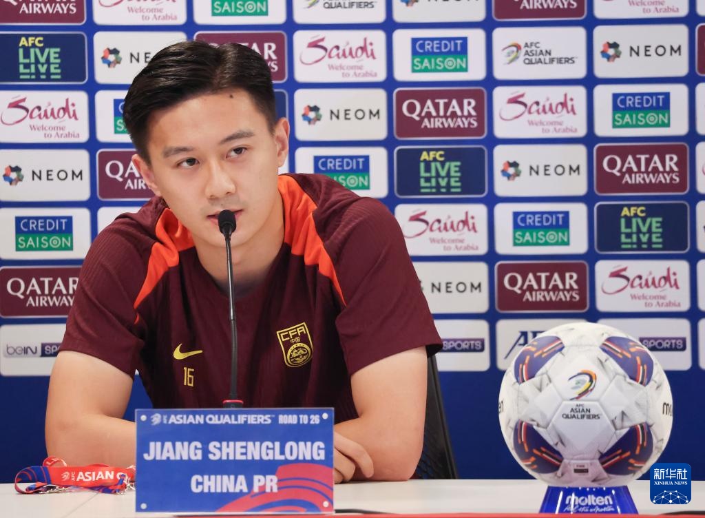 11月13日,中國隊球員蔣圣龍在賽前新聞發布會上。新華社記者 王海洲 攝