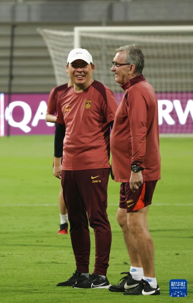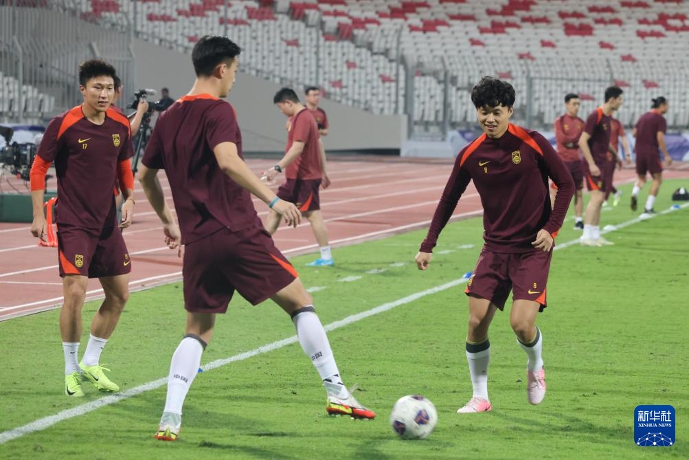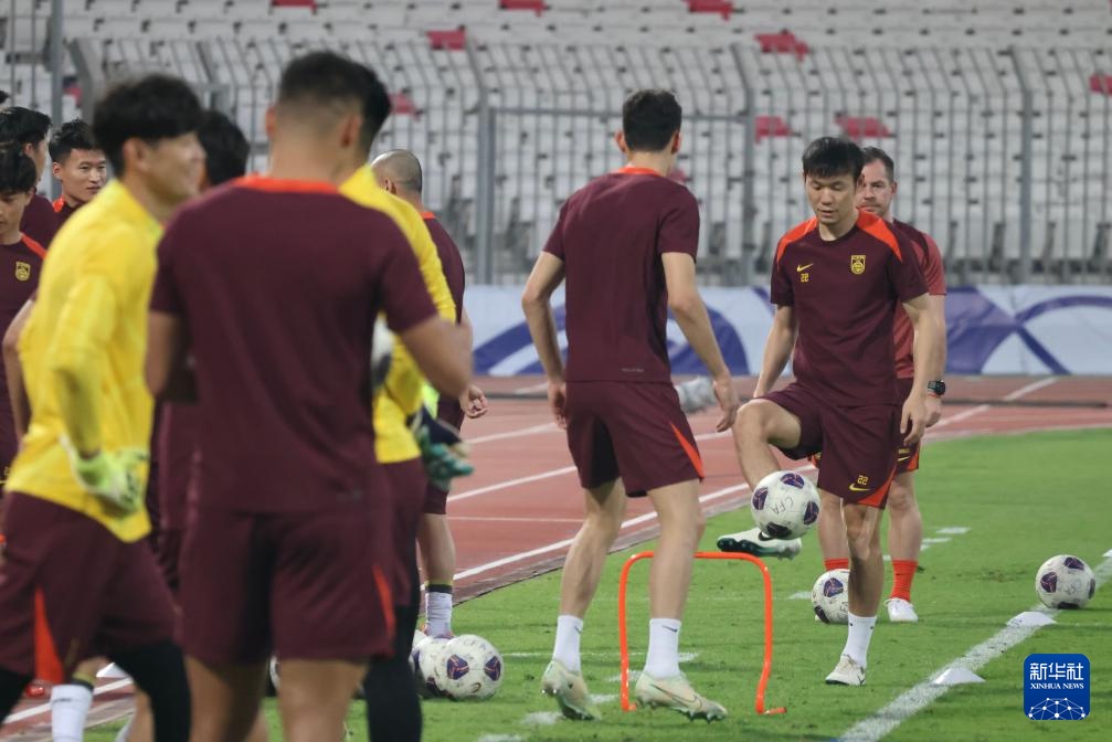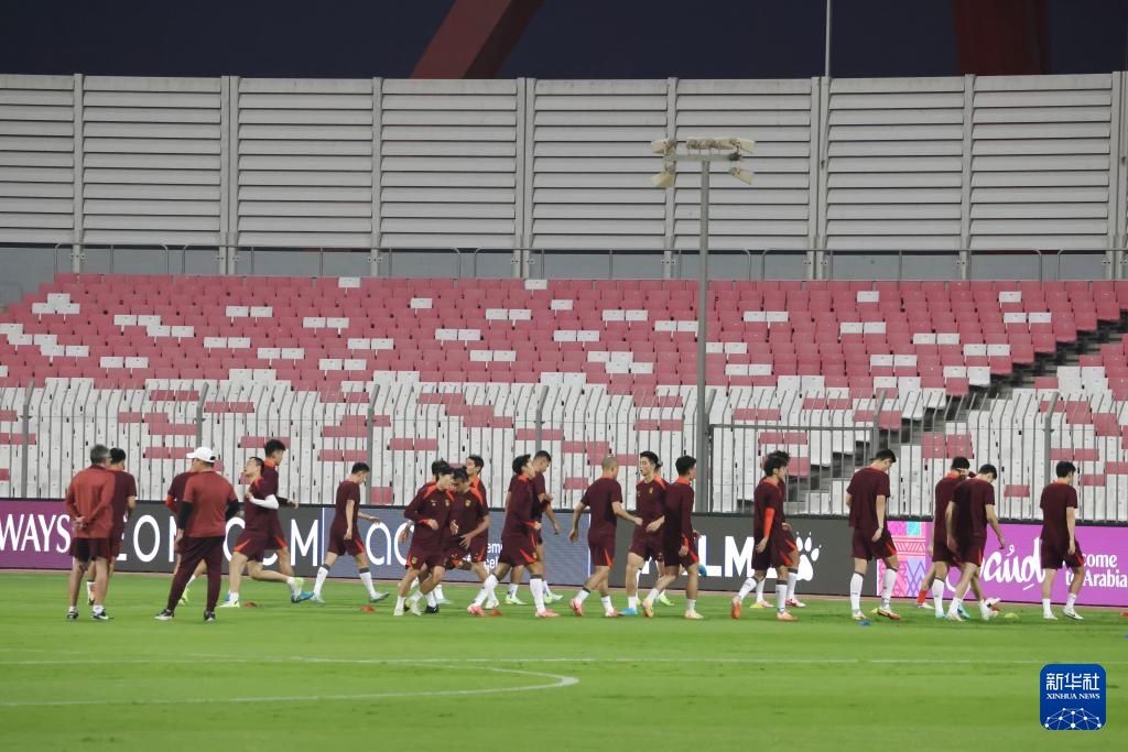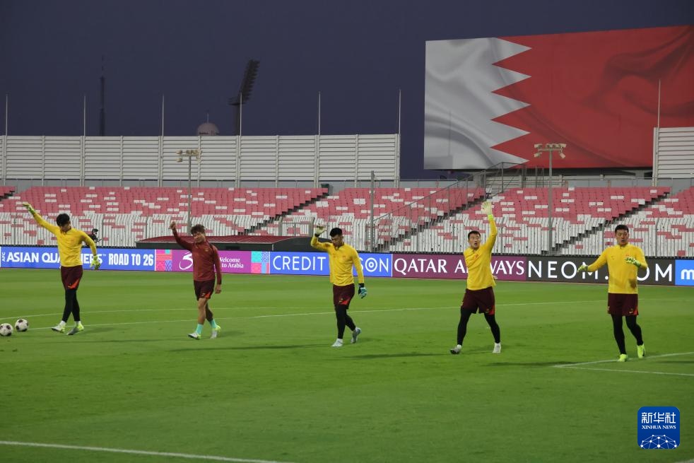 當日,中國國家男子足球隊在巴林里法市訓練,備戰14日與巴林隊的2026年美加墨世界杯亞洲區預選賽18強賽。