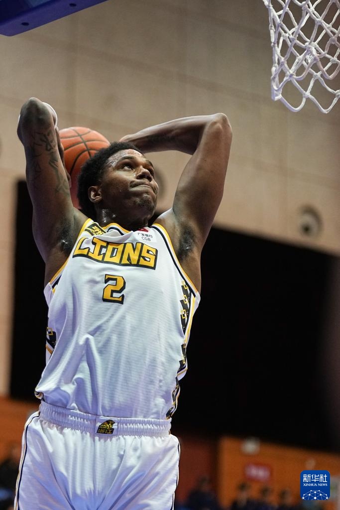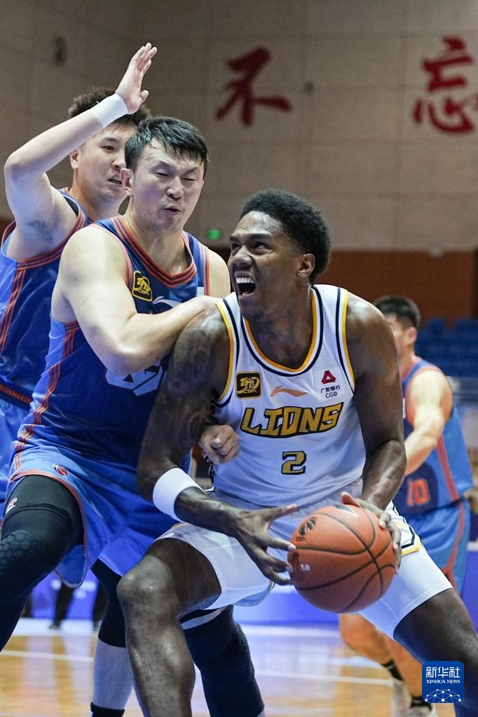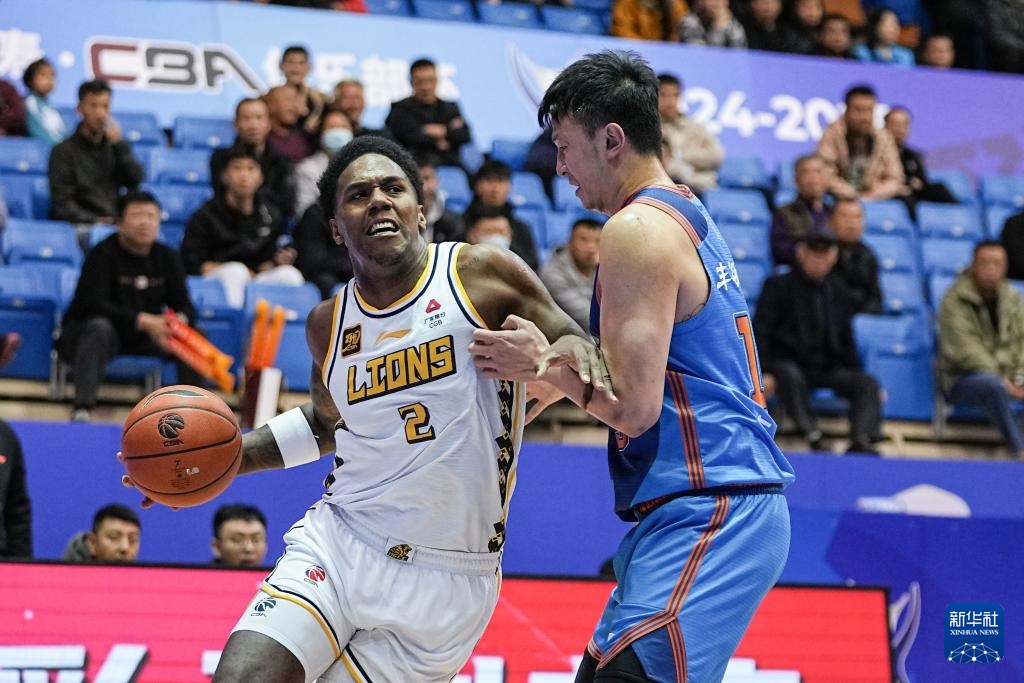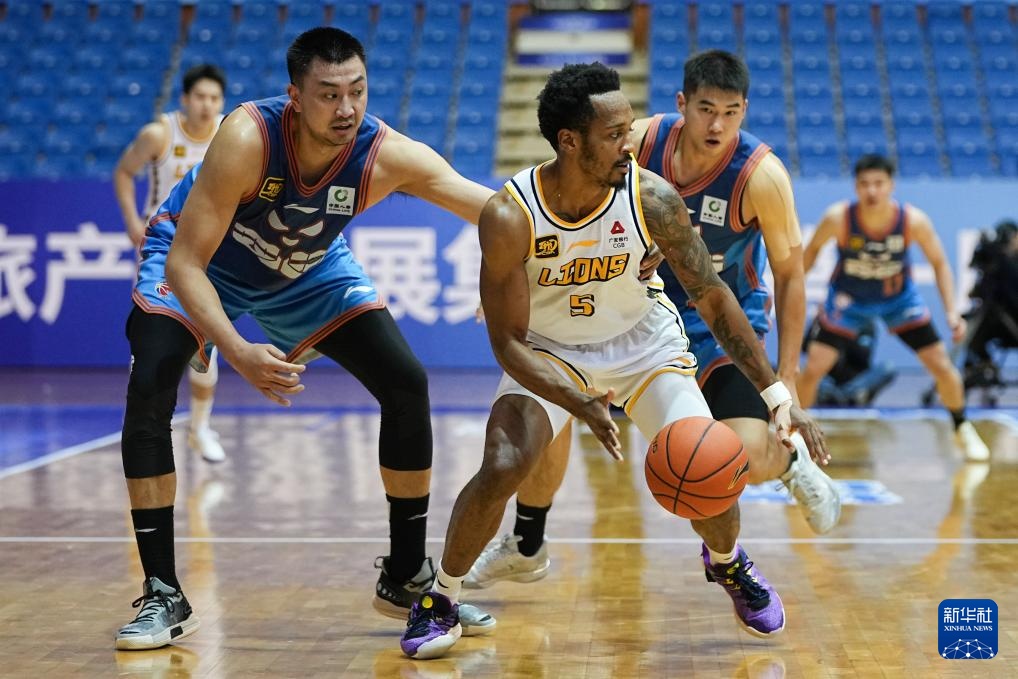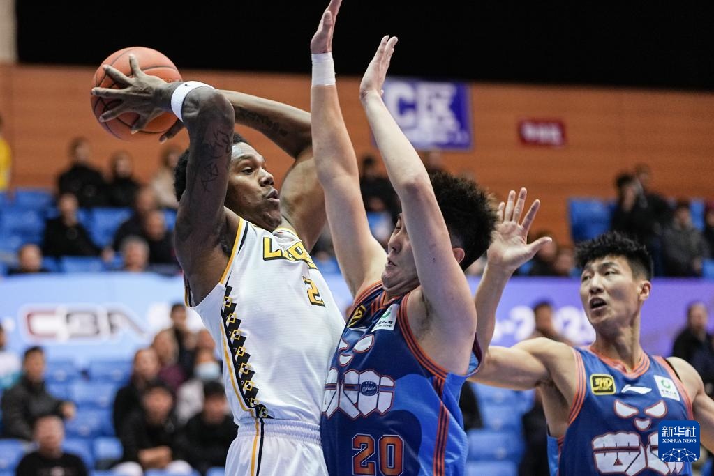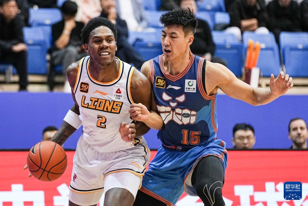 11月13日,浙江方興渡隊球員卡爾頓(右)在比賽中防守。新華社記者 朱崢 攝