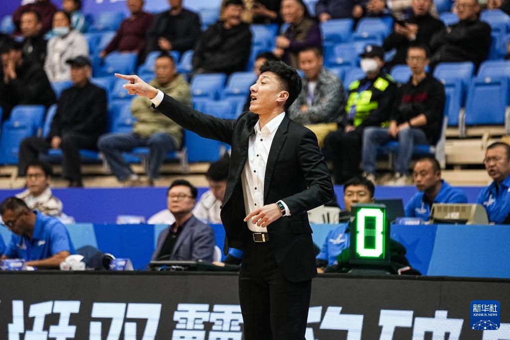 11月13日,四川豐谷酒業隊主教練韓碩在場邊指揮。新華社記者 朱崢 攝