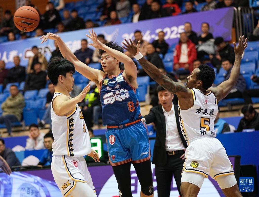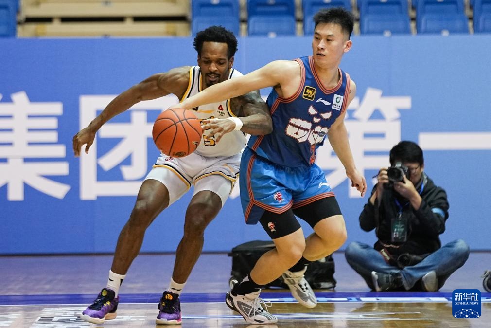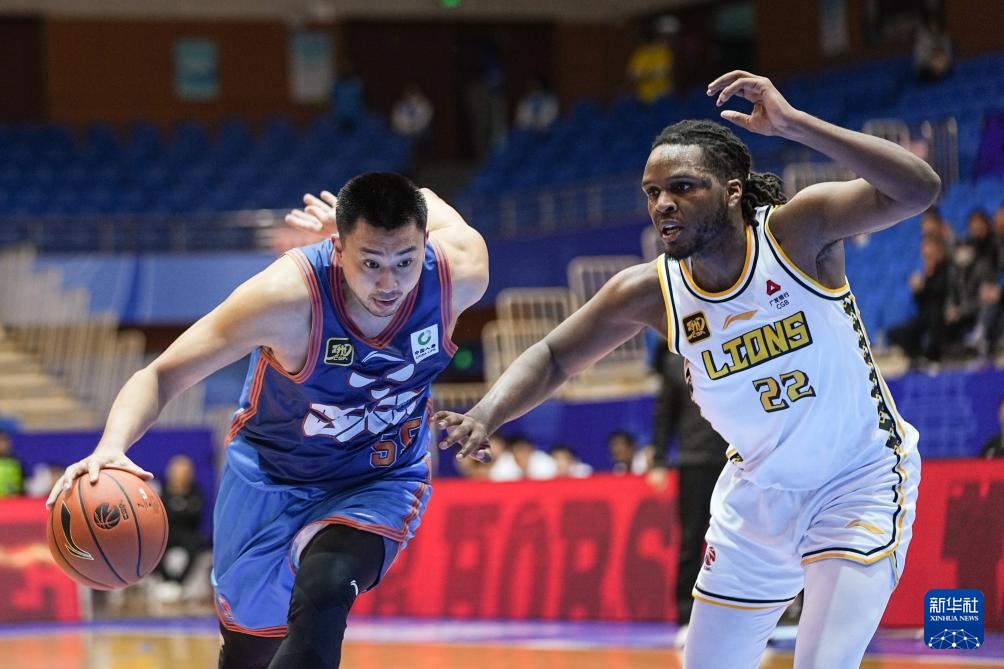 11月13日,四川豐谷酒業隊球員蘇若禹(左)在比賽中突破。新華社記者 朱崢 攝