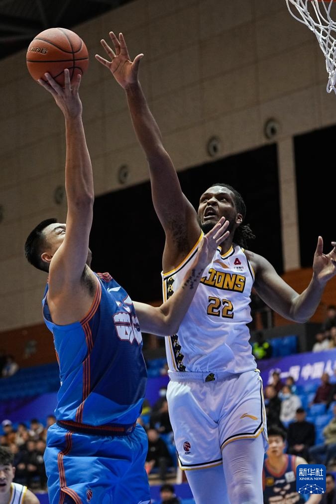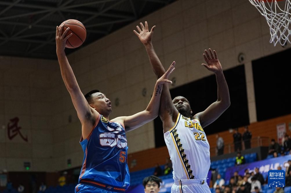 11月13日,四川豐谷酒業隊球員蘇若禹(左)在比賽中上籃。新華社記者 朱崢 攝