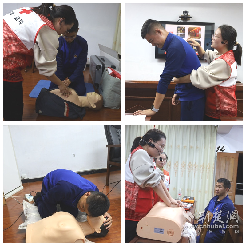 培訓(xùn)中,授課老師圍繞救護員的施救原則、現(xiàn)場救護環(huán)境評估、人員傷情判定、創(chuàng)傷急救包扎,以及心臟驟停臨床表現(xiàn)與AED操作步驟等方面進行了逐一分解講述。通過生動的講解和互動,隊員們?nèi)媪私饬诵姆螐?fù)蘇操作步驟和AED使用方法。大家利用模擬人開展心肺復(fù)蘇實操訓(xùn)練并進行海姆立克急救法分組訓(xùn)練。在這個過程中,授課老師逐一糾正隊員們在操作中存在的問題。理論知識與實際操作相結(jié)合,使大家更深入地理解和掌握了急救技能,通過熟悉處置突發(fā)事件的救護措施,有效提高了大家的自救互救能力。