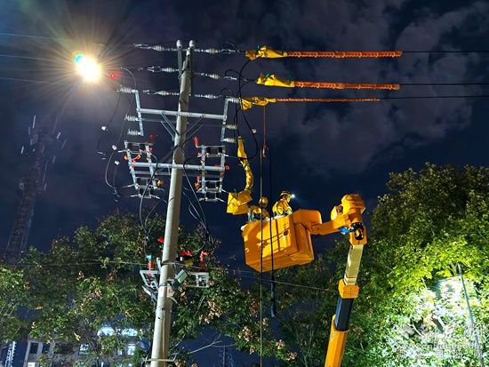 13日零點40分,安全監護人也向施工人員交代了此次工作中的安全風險點、工作的主要內容和工作重點。在該公司相關負責人現場安全督導下,全體作業人員在應急照明燈光的照射下,迅速開展線路改接工作。