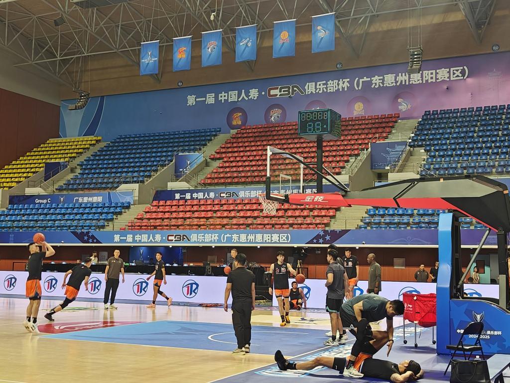 11月12日,上海隊在賽前熱身。新華社記者 曹奕博 攝