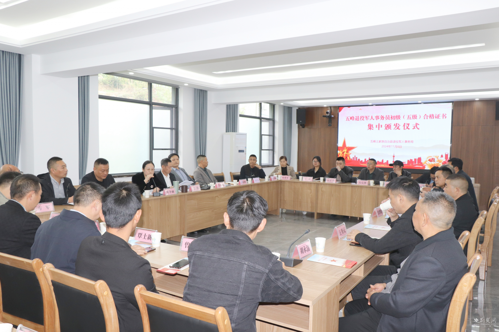 荊楚網(湖北日報網)訊(通訊員常夢星)近日,五峰土家族自治縣退役軍人事務局舉行了退役軍人事務員初級(五級)培訓合格證書集中頒發儀式。