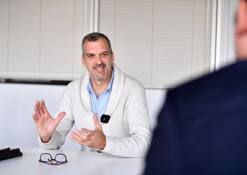 11月13日,世界自行車中心主管雅克·蘭德里接受采訪。新華社記者 連漪 攝
