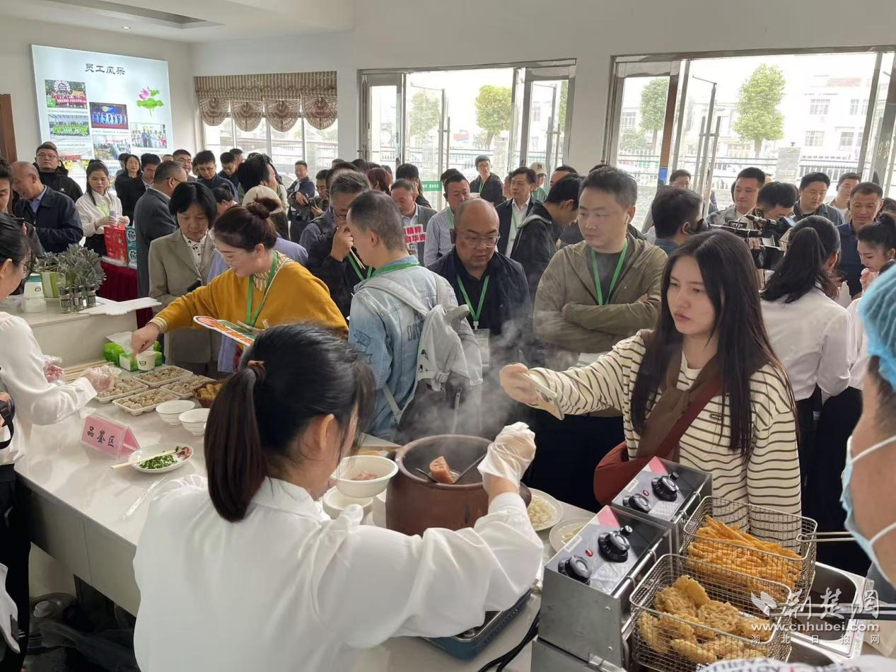媒體代表和嘉賓品嘗蓮藕美食(記者馮凱 攝)