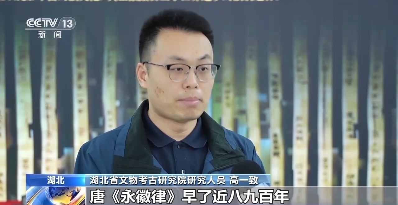 湖北省文物考古研究院研究人員 高一致:以《秦律十八種》為例來(lái)說(shuō),其中包括《田律》《廄苑律》等等以它們?yōu)榇淼乃⒌厍芈审w系,構(gòu)建了目前所見(jiàn)我國(guó)最早的法典體系,比我國(guó)傳世的法典唐《永徽律》早了近八九百年。