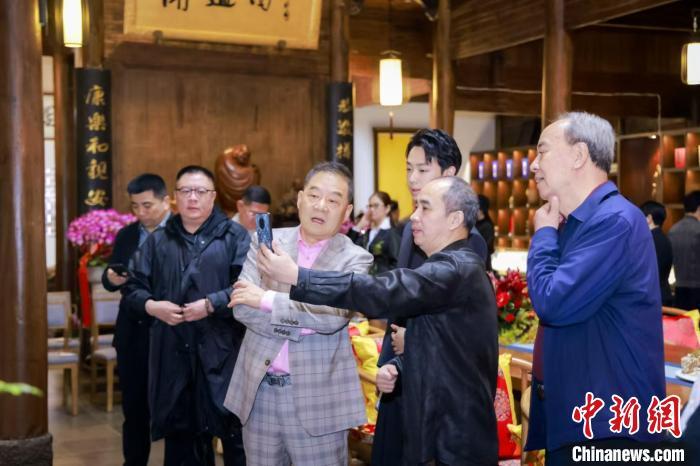 王國平以VR方式讓觀眾進入畫作中的禪境。(中新網(wǎng)記者 陳靜攝)