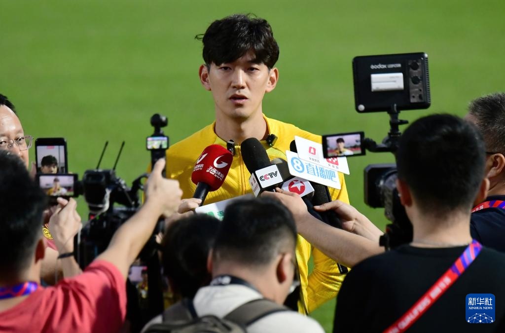 11月17日,中國隊守門員顏駿凌接受媒體采訪。