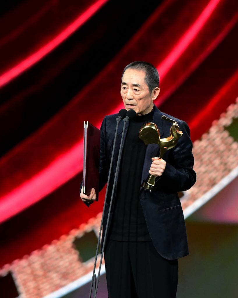 11月16日,《第二十條》導演張藝謀在臺上領獎致辭。新華社記者魏培全攝