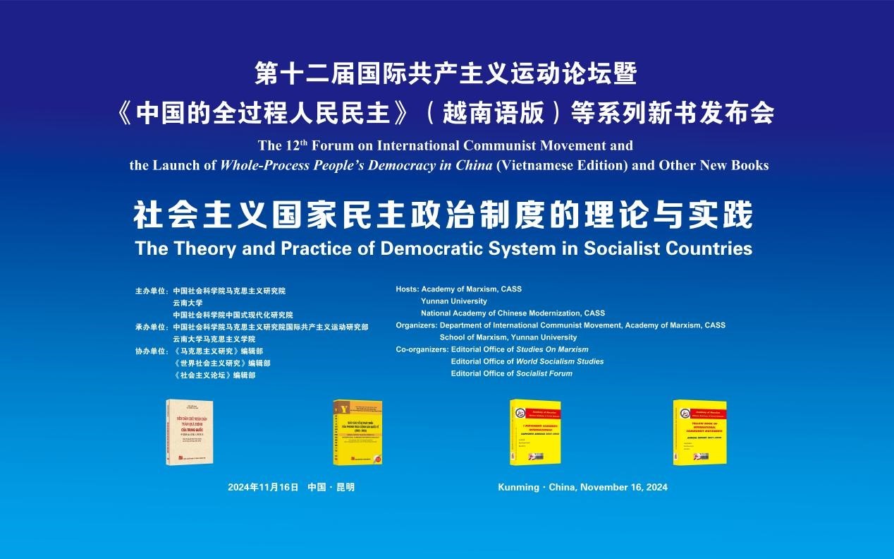 11月16日,“第十二屆國際共產主義運動論壇暨《中國的全過程人民民主》(越南語版)等新書發布會”在昆明舉行,主題為“社會主義國家民主政治制度的理論與實踐”。本次論壇由中國社會科學院馬克思主義研究院、云南大學和中國社會科學院中國式現代化研究院主辦,中國社會科學院馬克思主義研究院國際共產主義運動研究部、云南大學馬克思主義研究院承辦。中國社會科學院中國式現代化研究院黨委書記林建華,云南大學黨委書記周學斌,中國社會科學院馬克思主義研究院副院長于海青等出席會議并致辭。