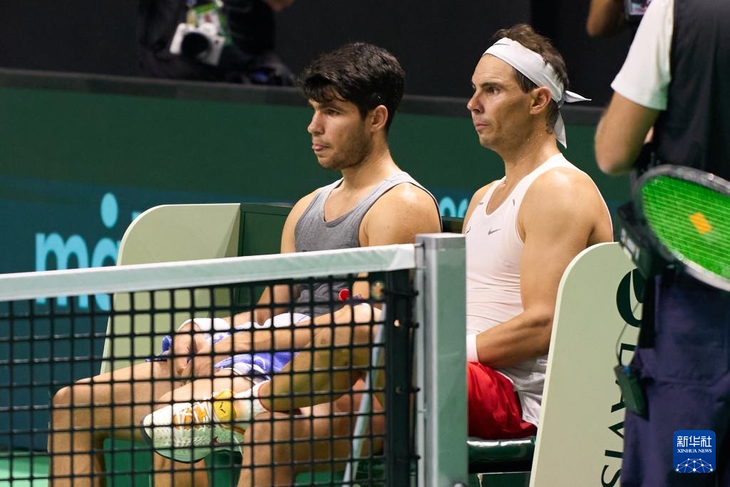 11月18日,西班牙選手納達爾(右)與阿爾卡拉斯在訓練后。