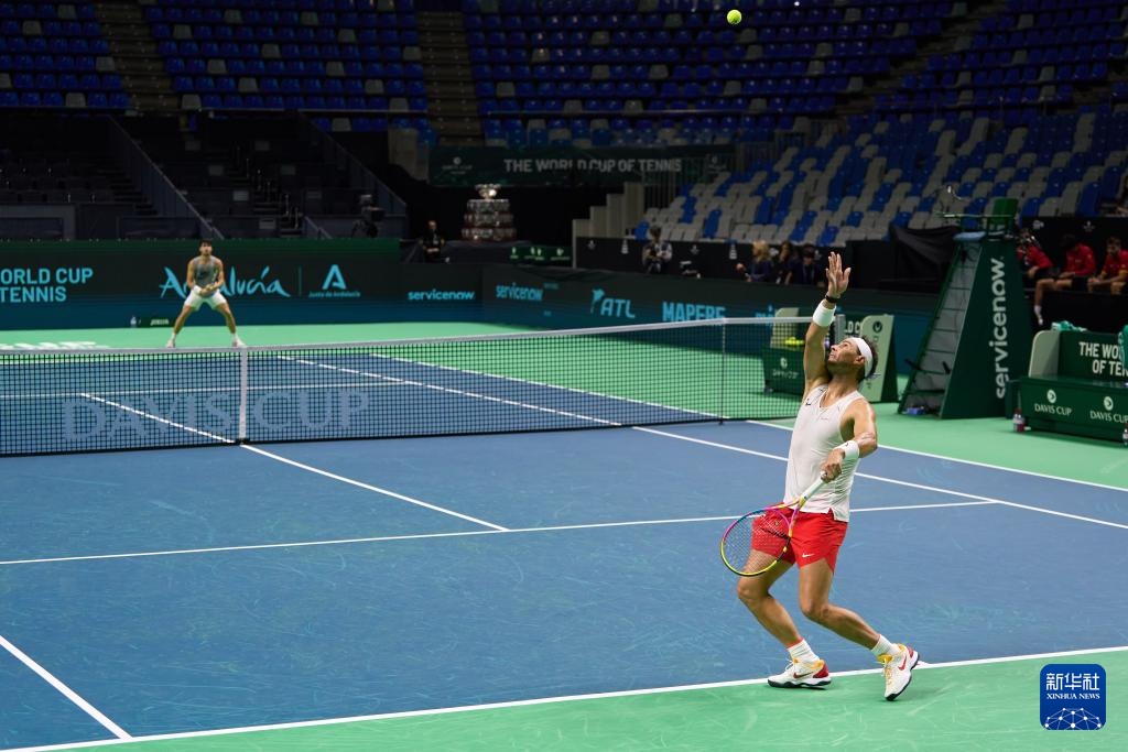 11月18日,西班牙選手納達爾(前)在訓練中發球。