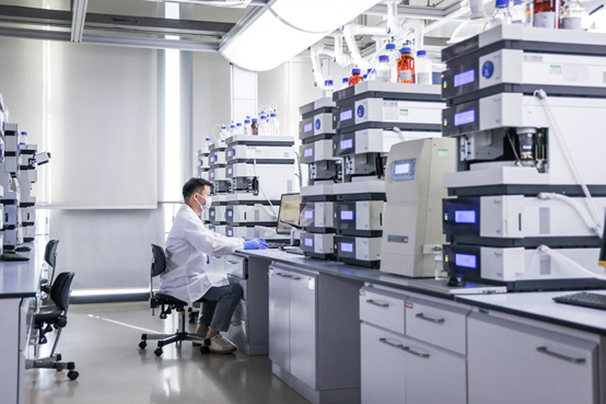 工作人員在實(shí)驗(yàn)室運(yùn)用指紋圖譜技術(shù)對(duì)藥材原料等進(jìn)行分析檢測(cè)。伊霄攝