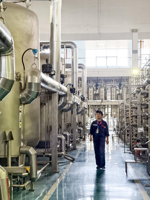 工作人員在勁牌中藥科學(xué)提取車間巡檢。伊霄攝