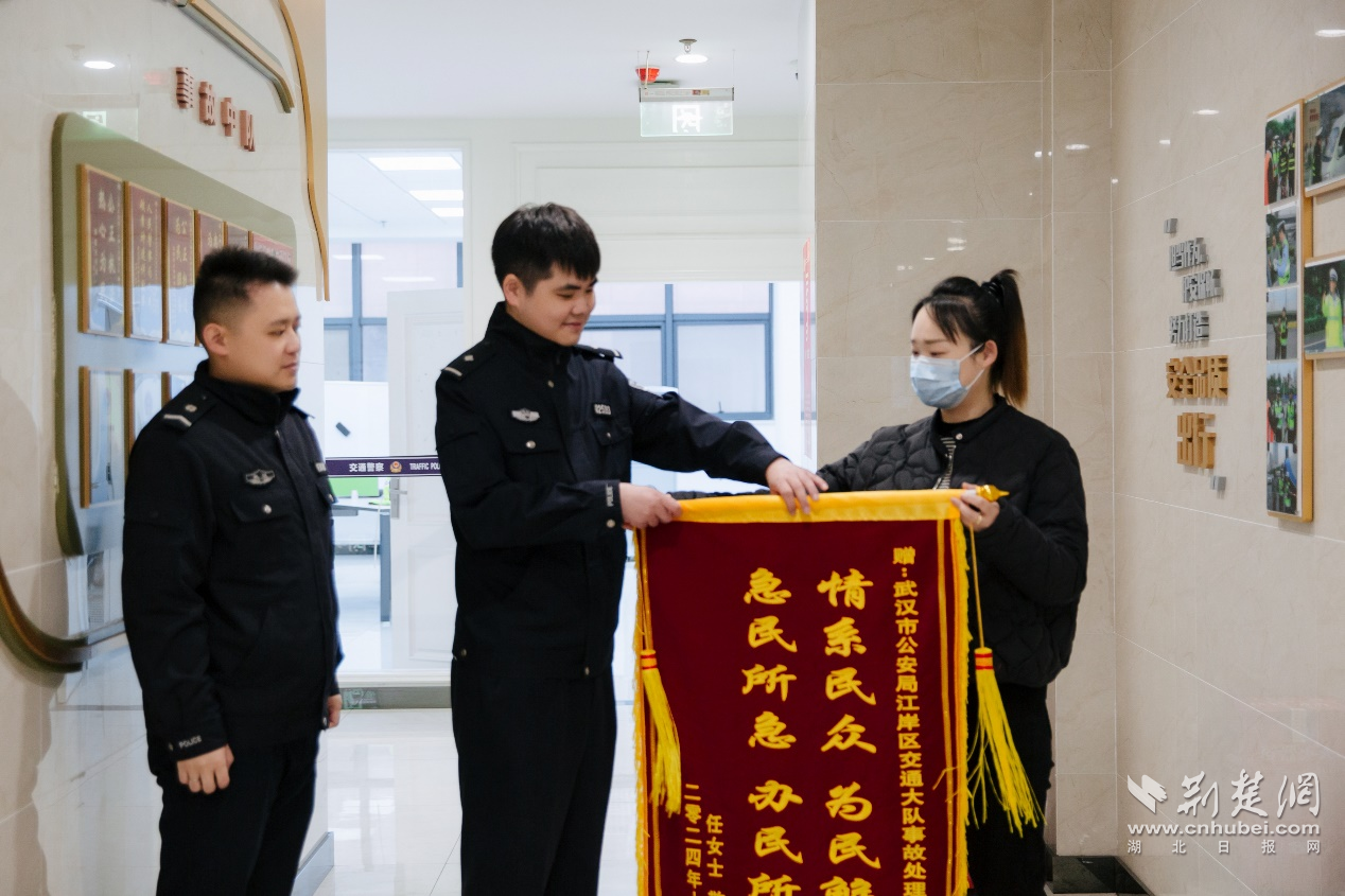 荊楚網(wǎng)(湖北日?qǐng)?bào)網(wǎng))訊(通訊員 張慧、肖俊)11月19日,一面錦旗被送到武漢市公安局江岸區(qū)交通大隊(duì)事故處理中隊(duì),任女士滿懷激動(dòng)對(duì)幫她找回重要筆記本電腦的民警表達(dá)著感激之情。
