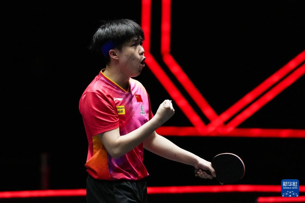 11月21日,王楚欽在比賽中慶祝。