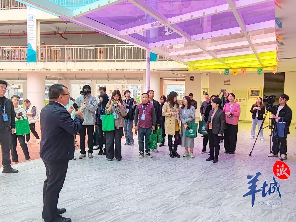 14時15分,下午第一節課,媒體記者們踏進校園后,深圳龍華紫金實驗學校黨總支書記黃彬帶領大家參觀校園環境、教學設備,并講解了深圳教學理念落地到當地的過程和成效。