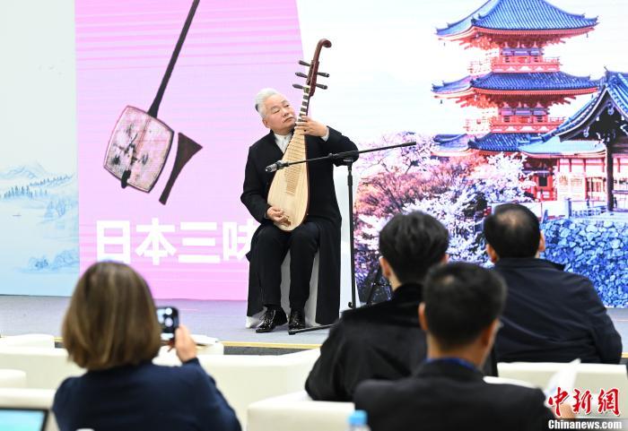 方錦龍在互聯網文化交流互鑒論壇上演奏。中新社記者 王剛 攝