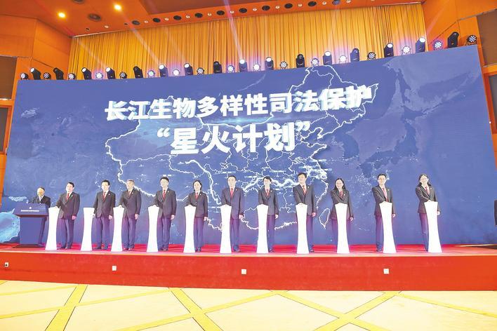11月23日,第三屆長江大保護司法論壇在武漢開幕。開幕式上,由上海市、江蘇省、安徽省、江西省、湖北省、湖南省、重慶市、四川省、云南省、西藏自治區和青海省高級人民法院聯合發起,與會各方共同參與的《加強長江流域生物多樣性司法保護倡議書》正式發布。(湖北日報全媒記者 李溪 攝)
