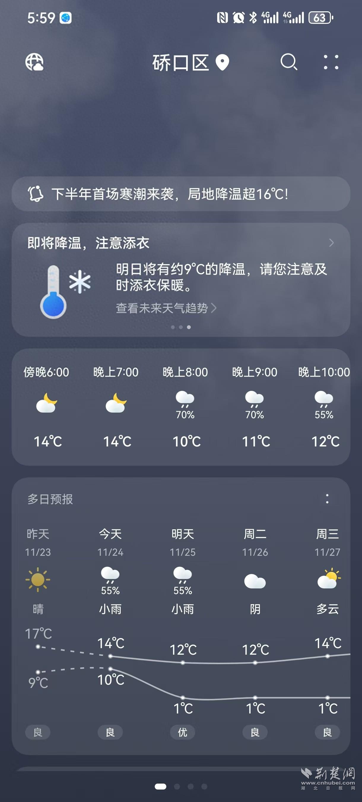 荊楚網(wǎng)(湖北日報網(wǎng))訊(通訊員廖立勛)小雪節(jié)氣剛過,江城武漢迎來了一波新的寒潮!據(jù)氣象部門預測,武漢受冷空氣影響,預計25日最低溫將降至1℃,并伴有降水過程,給交通出行帶來一定影響。武漢交警提醒廣大市民,避開出行高峰時段,合理規(guī)劃出行方式及避堵路線,盡量選擇公共交通方式綠色出行。