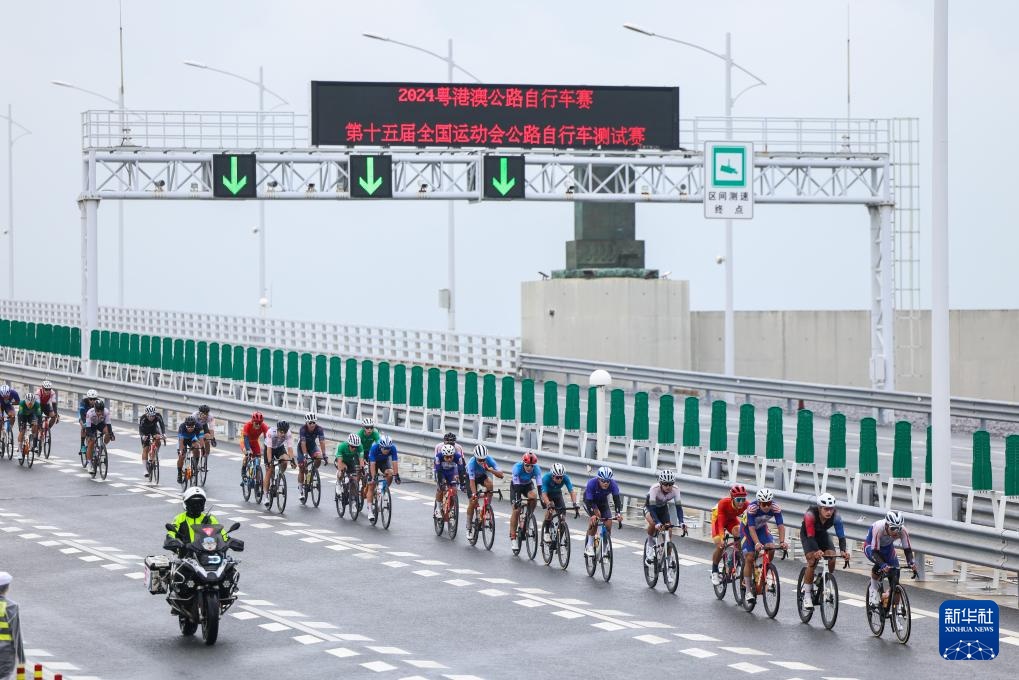 當(dāng)日,2024粵港澳公路自行車賽暨第十五屆全國(guó)運(yùn)動(dòng)會(huì)公路自行車測(cè)試賽舉行,比賽跨越粵港澳三地,途經(jīng)港珠澳大橋,賽道全程230公里。