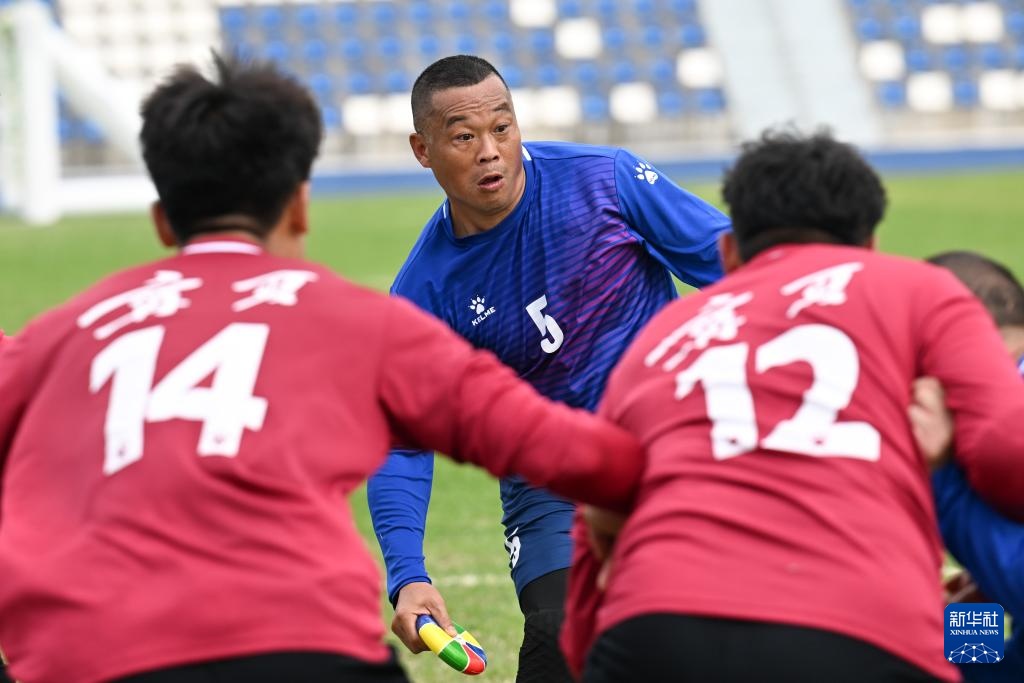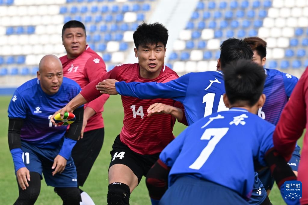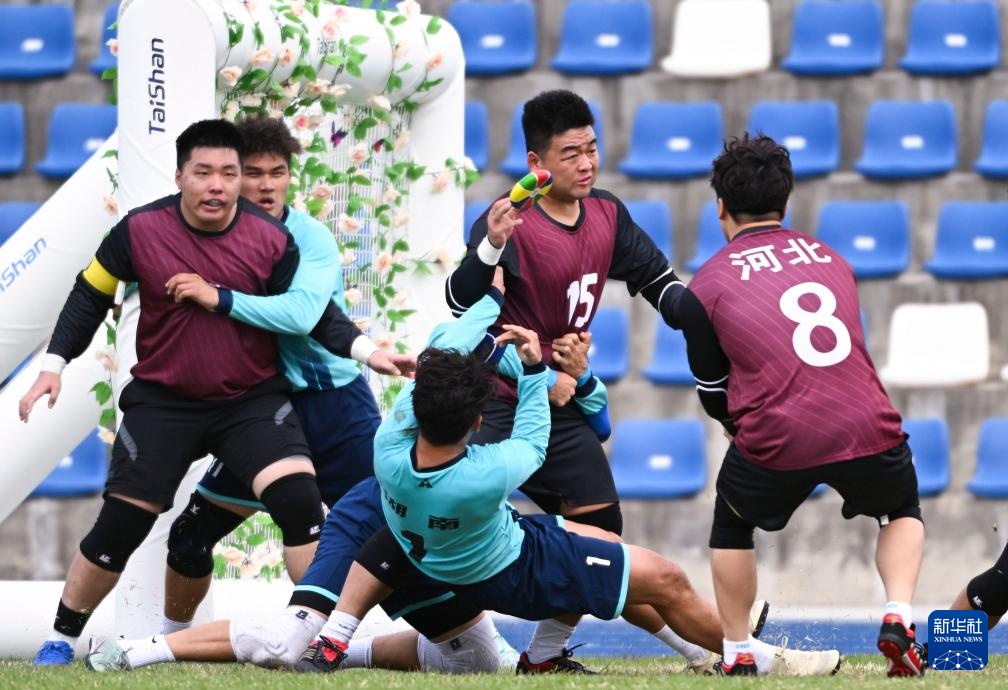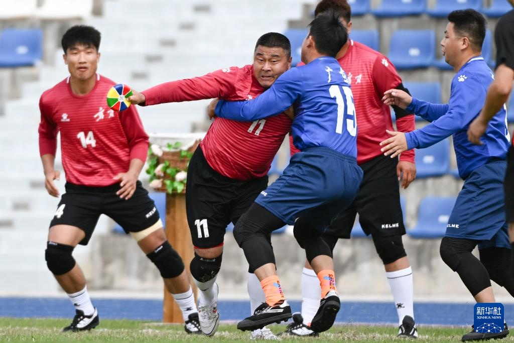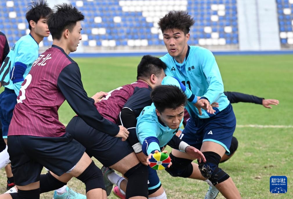 11月24日,寧夏隊(duì)選手在比賽中爭搶花炮。最終,寧夏隊(duì)4比5不敵廣東隊(duì)。