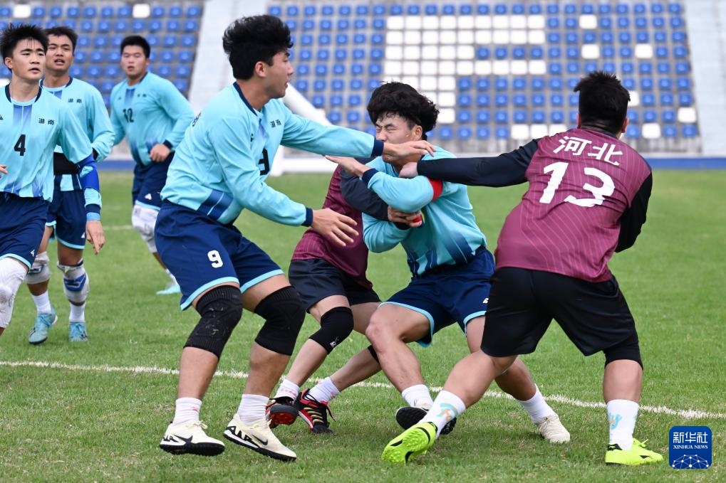 11月24日,湖南隊(duì)選手司嘉和(右二)在比賽中突破。最終,湖南隊(duì)6比3戰(zhàn)勝河北隊(duì)。