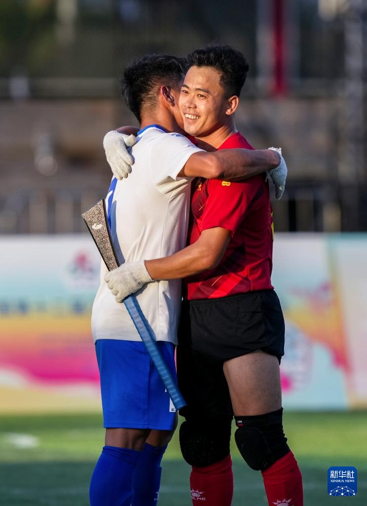 11月24日,北京隊選手田虎(右)與寧夏隊選手馬林在比賽后擁抱。