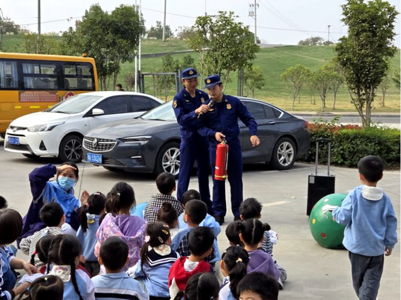 在濱江科技幼兒園,大隊消防宣傳員用通俗易懂的語言向師生講解了如何預防火災、如何正確撥打119電話、如何逃生自救等消防知識,并邀請師生進行滅火器實操,加深師生們對消防安全知識的理解,提高了自救能力。