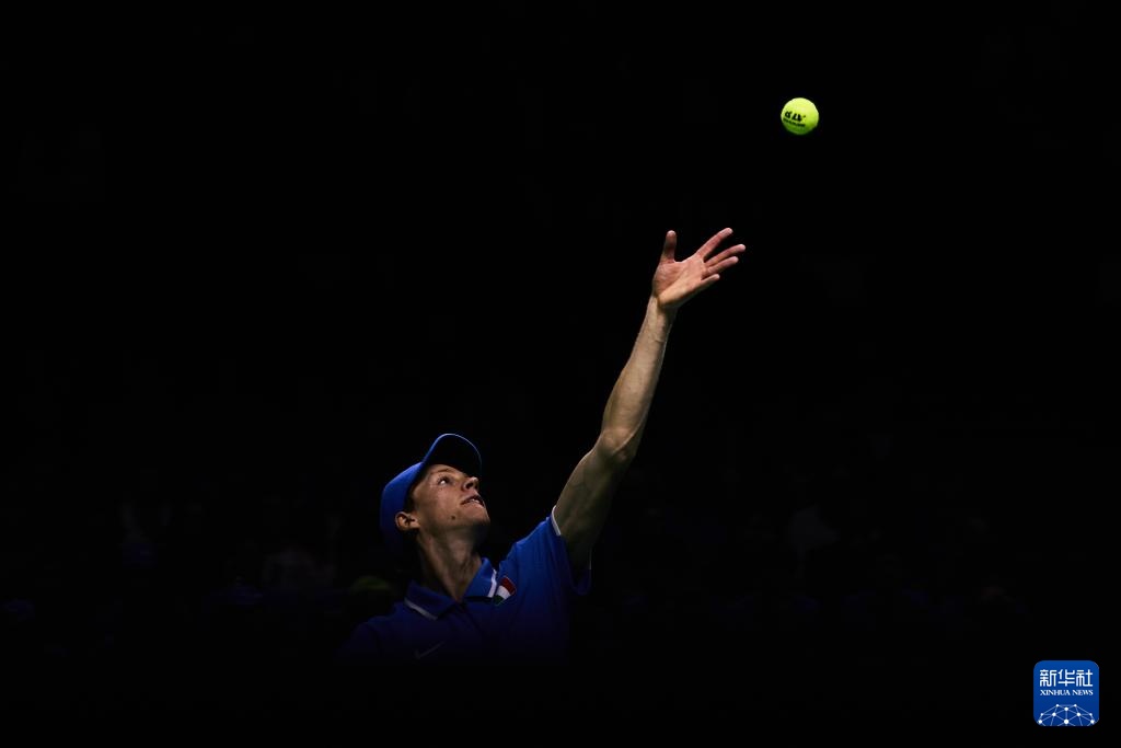 11月24日,意大利隊選手辛納在比賽中發球,他2比0戰勝荷蘭隊選手塔隆·格里克斯普爾。