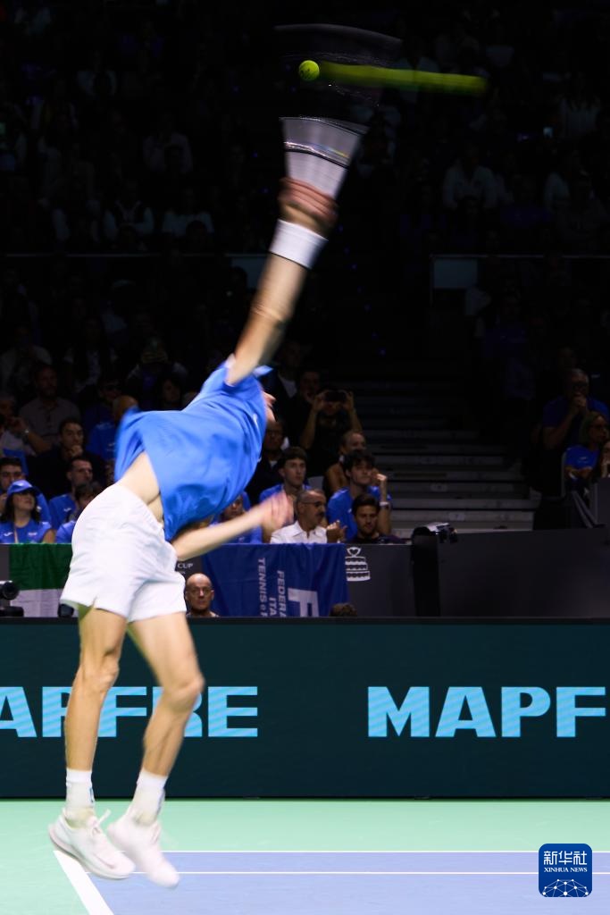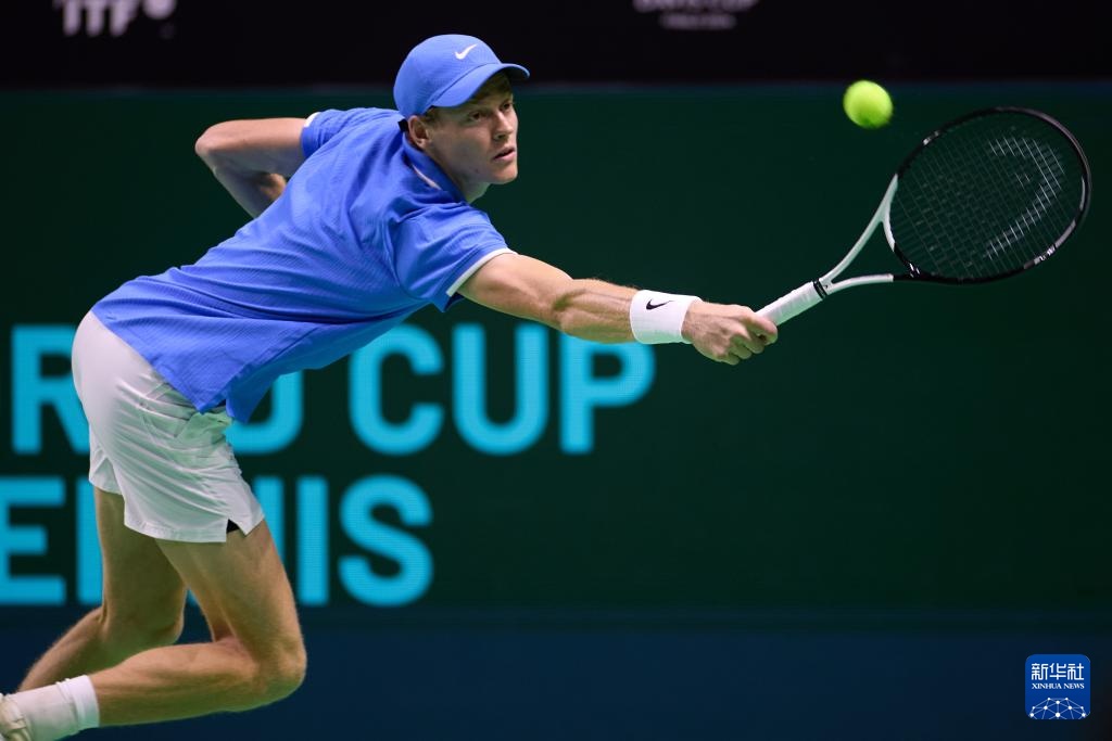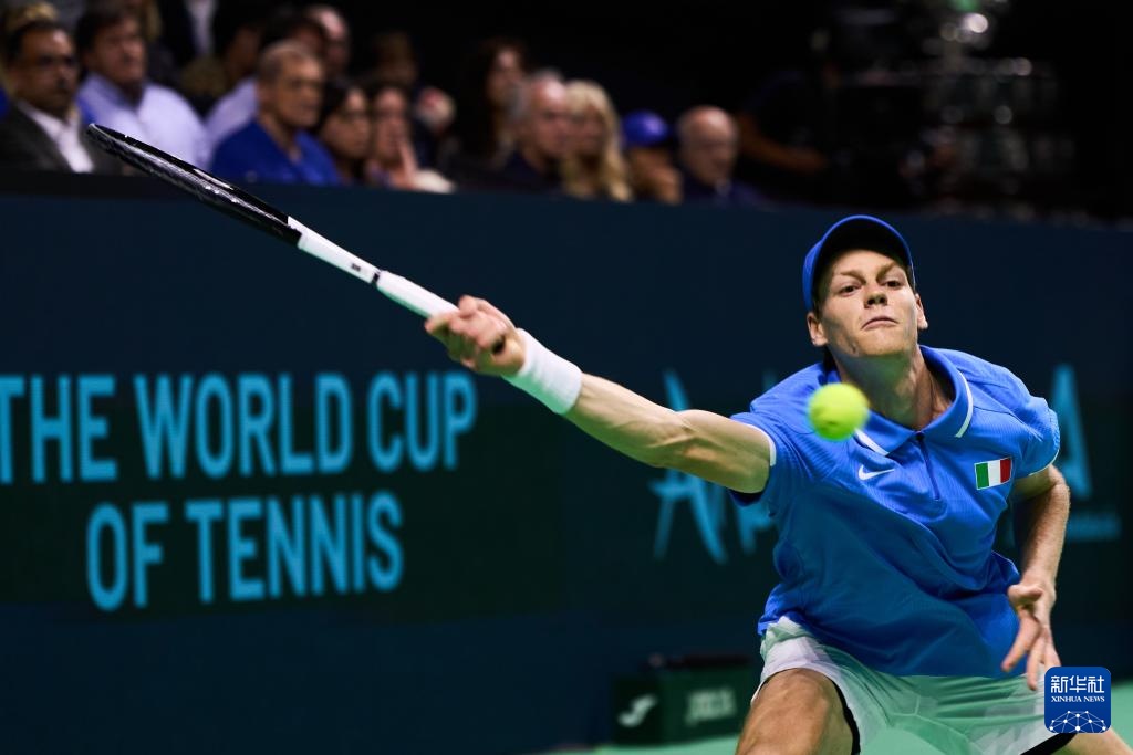 11月24日,意大利隊選手辛納在比賽中回球,他2比0戰勝荷蘭隊選手塔隆·格里克斯普爾。