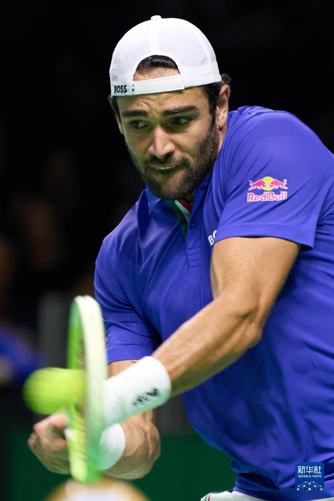 11月24日,意大利隊選手貝雷蒂尼在比賽中回球,他2比0戰勝荷蘭隊選手范德贊德舒爾普。