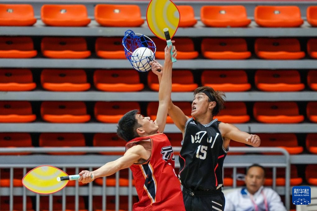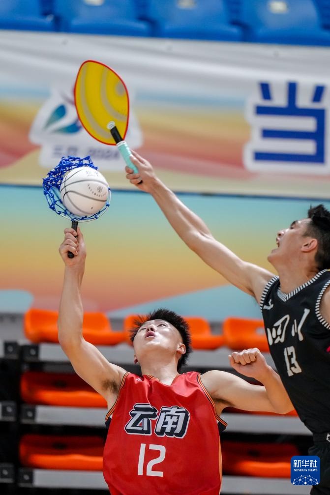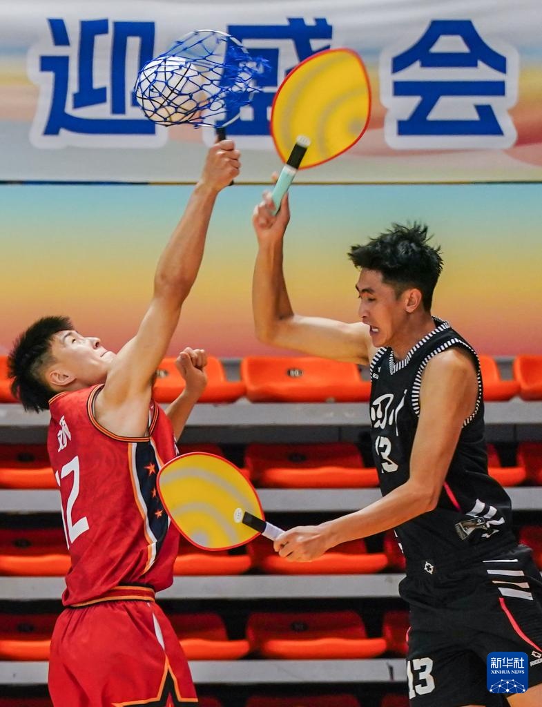 11月25日,云南隊(duì)選手溫常鑫(左)在比賽中攔截失敗,被四川隊(duì)選手彭強(qiáng)成功接球。