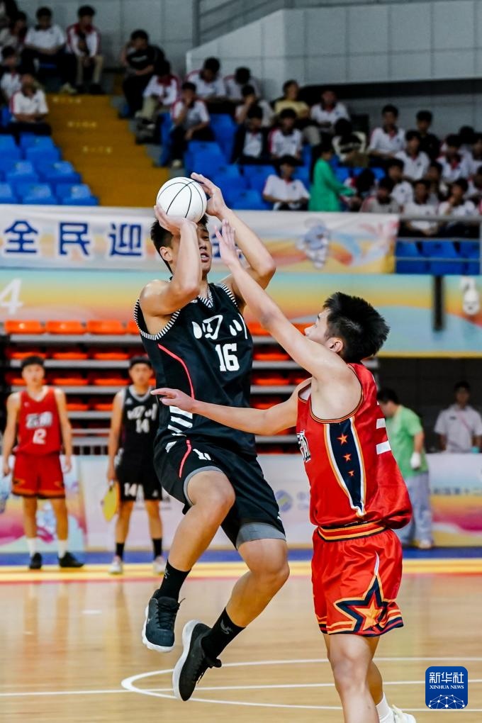 11月25日,云南隊(duì)選手李邱宇(左)在比賽中攔截四川隊(duì)選手彭強(qiáng)接球。