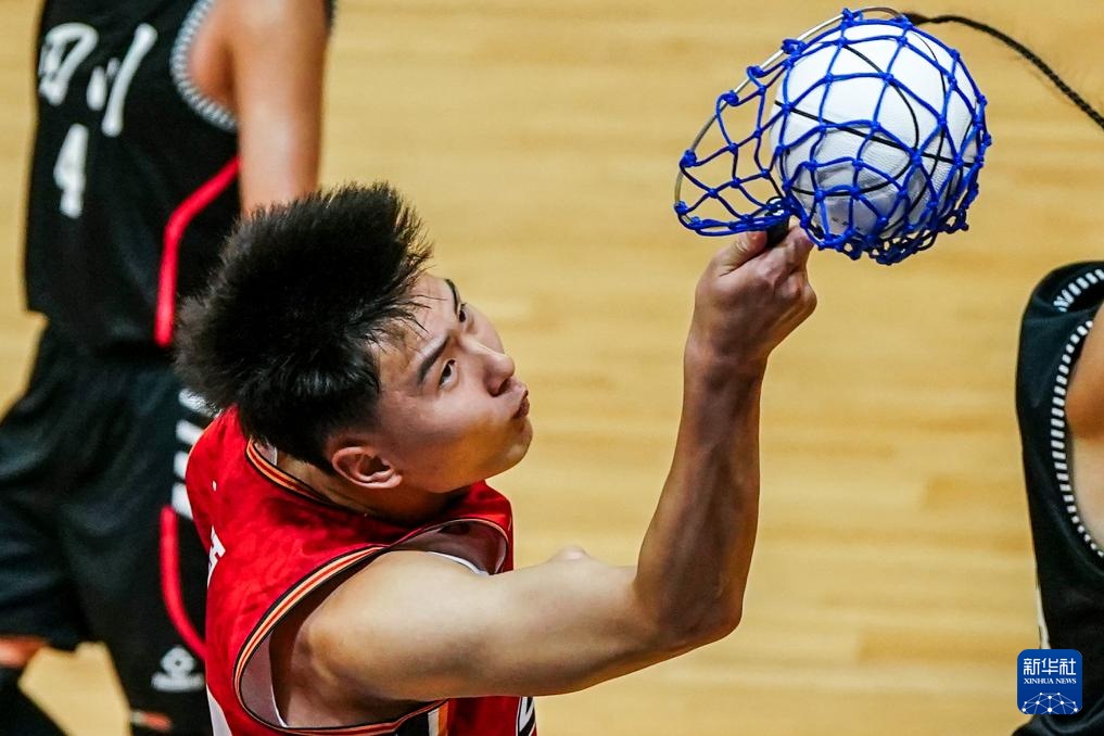 11月25日,四川隊(duì)選手旦真澤朗(右)在比賽中攔截失敗,被云南隊(duì)選手劉碩成功接球。