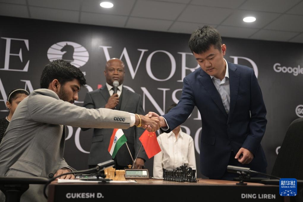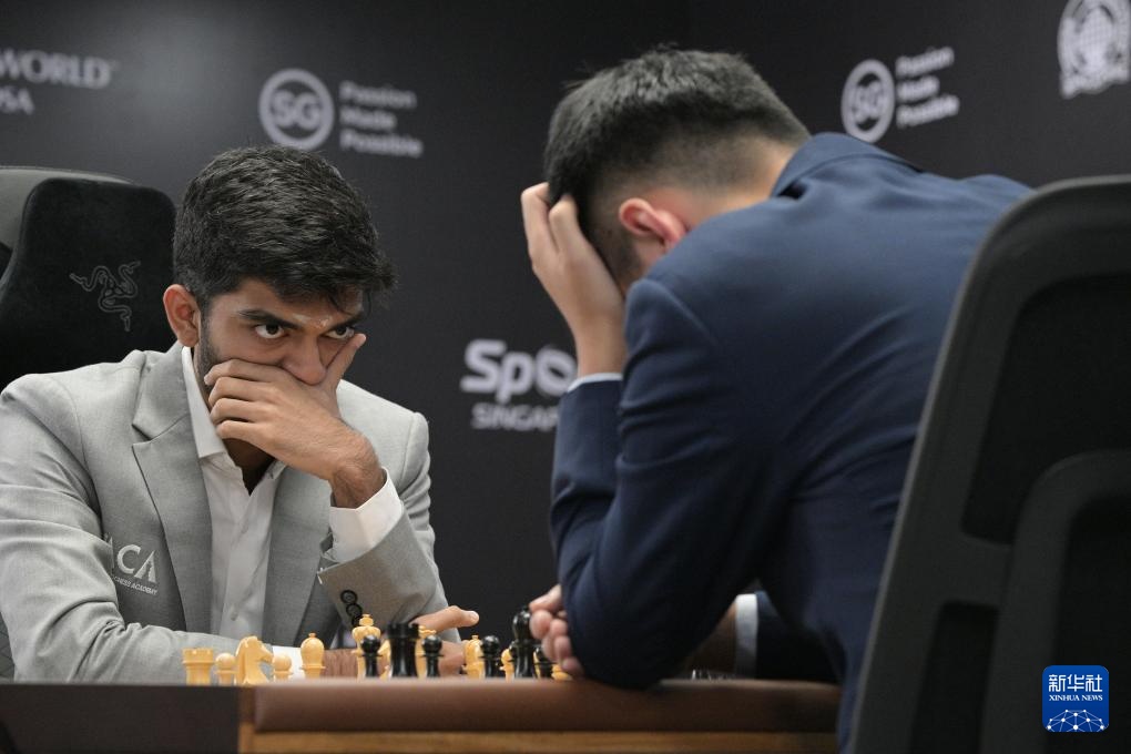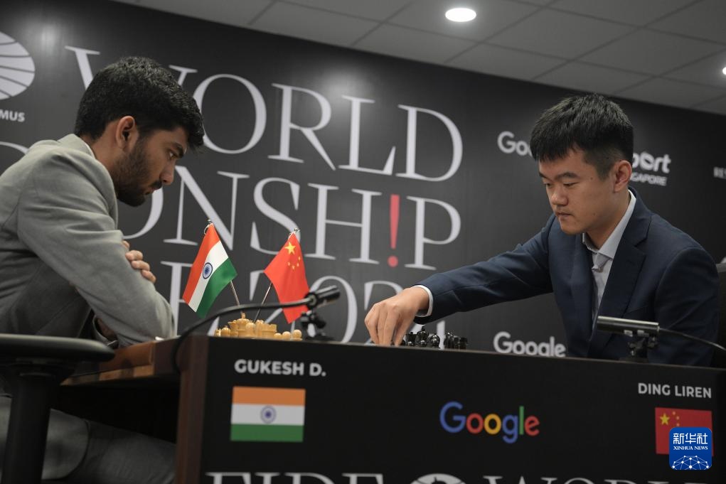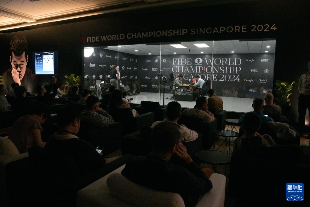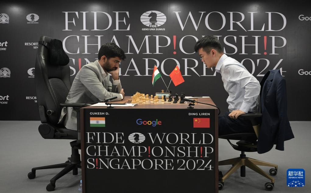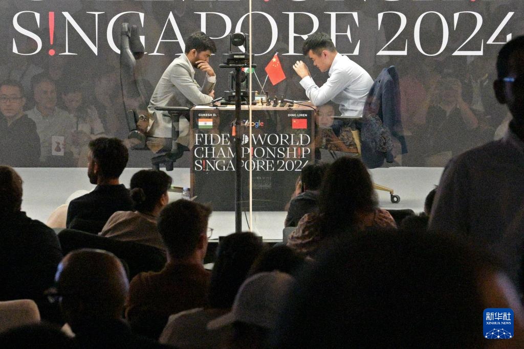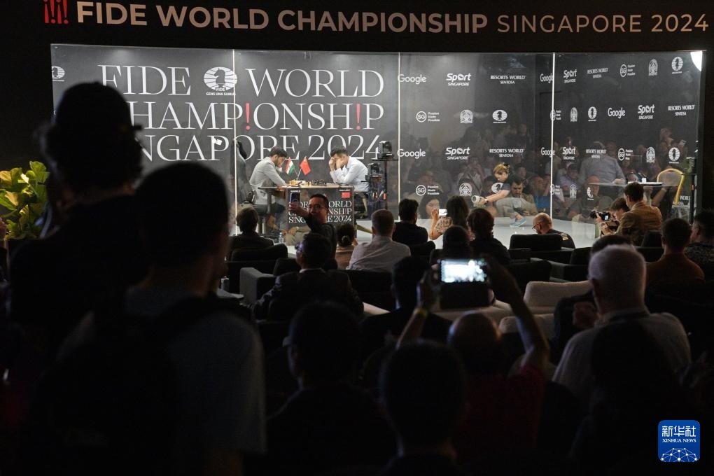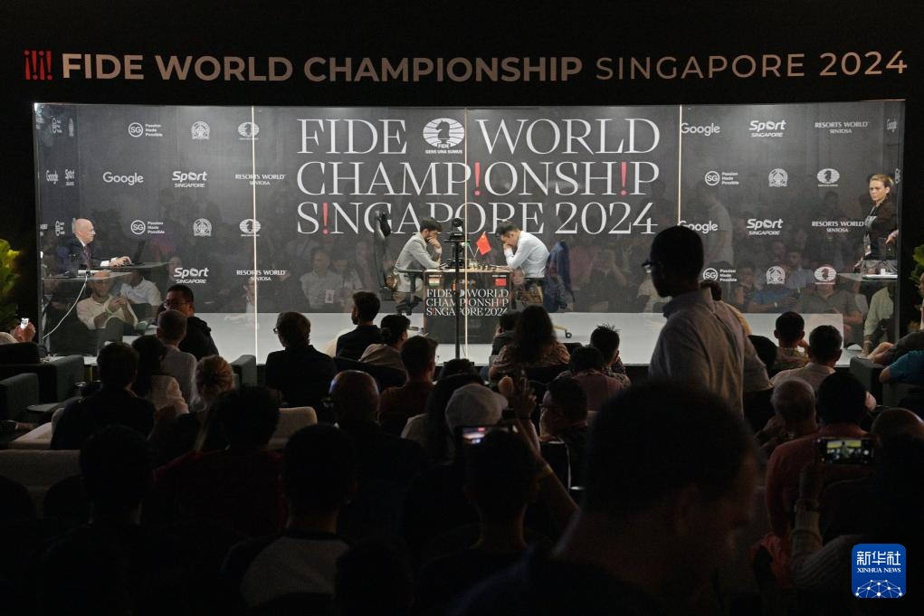 當日,2024年國際棋聯國際象棋世界冠軍賽在新加坡圣淘沙開賽。在首輪比賽中,中國棋手丁立人對陣印度棋手古克什。
