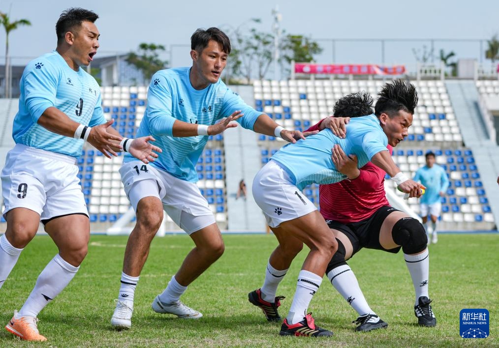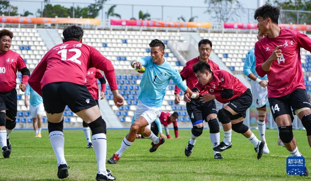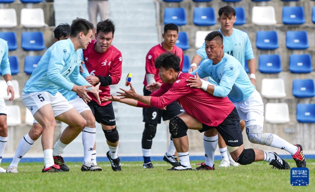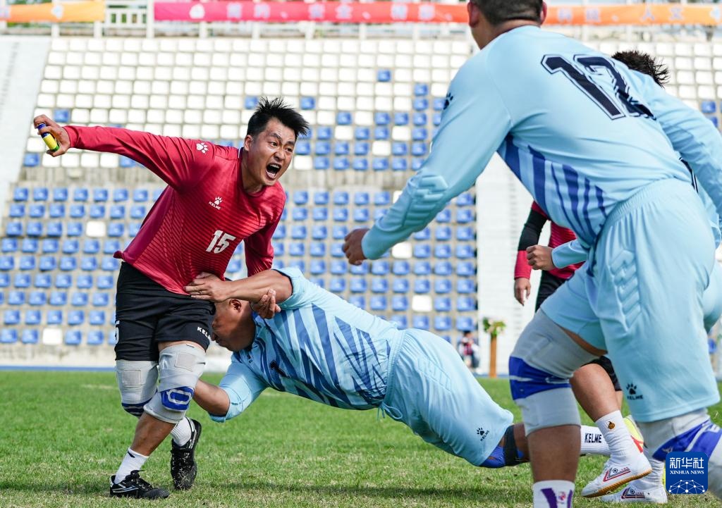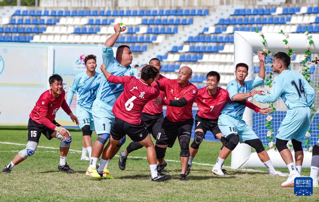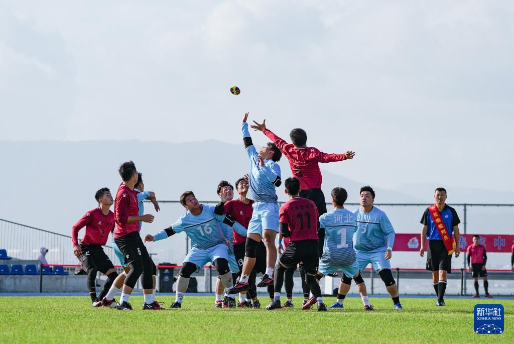11月25日,廣西隊選手與河北隊選手在比賽中爭搶花炮。最終,廣西隊9比3戰勝河北隊。
