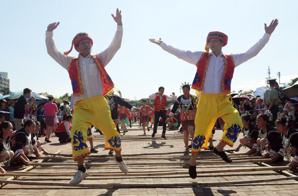 黎族竹竿舞由踩踏、跳躍、轉體等動作組合而成