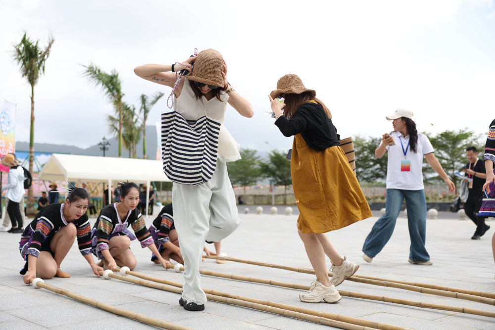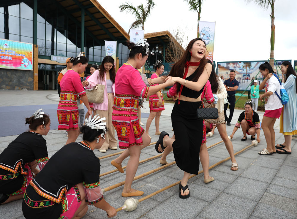 前來參觀這個黎族小村莊的賓客躍躍欲試