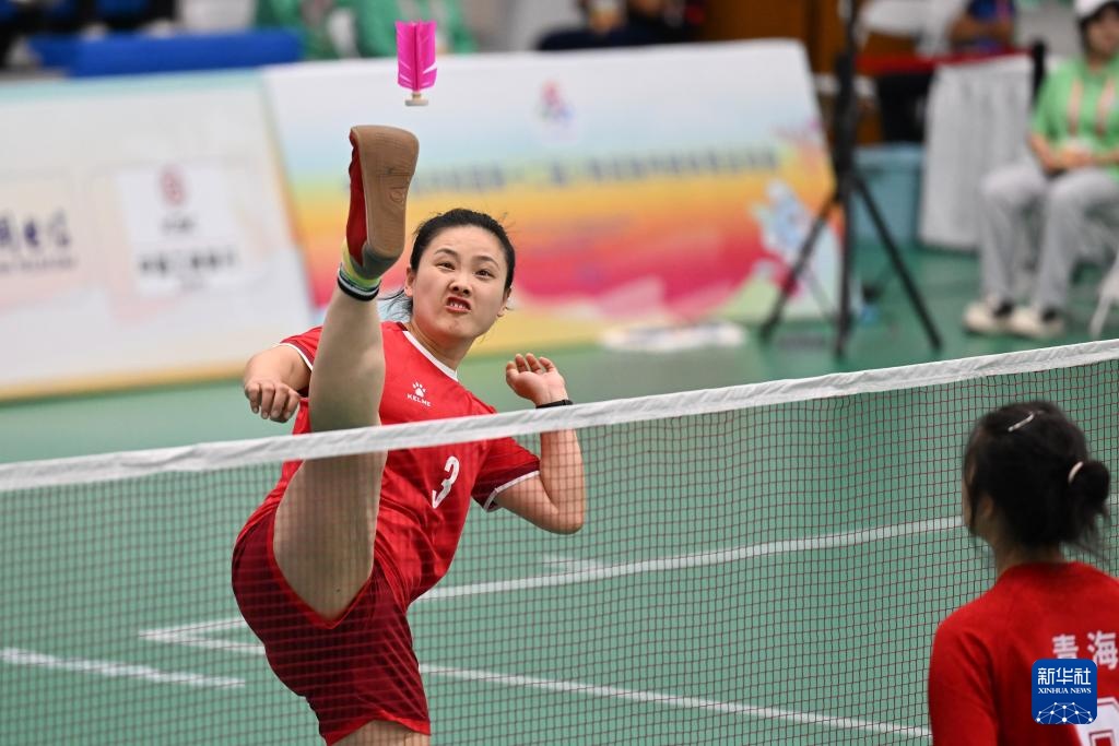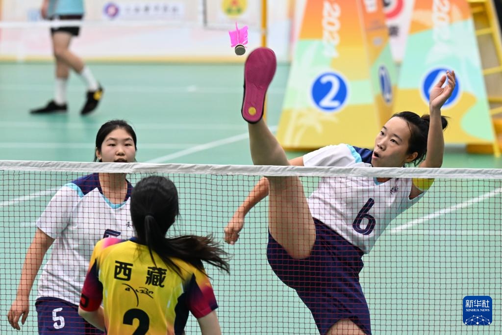 當日,第十二屆全國少數民族傳統體育運動會毽球女子雙人賽第一輪在海南省三亞市舉行。