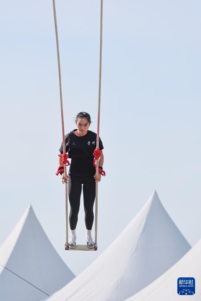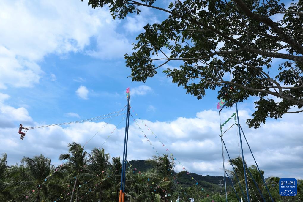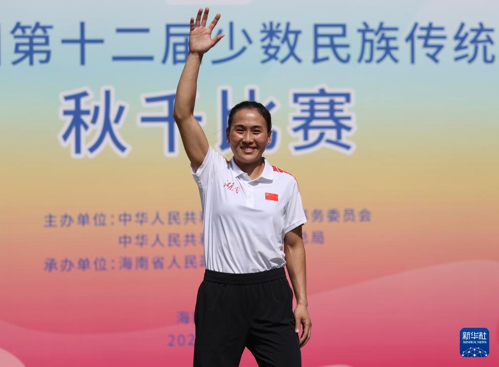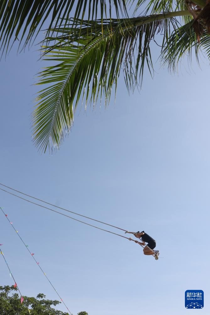 當日,第十二屆全國少數民族傳統體育運動會秋千55公斤單人高度決賽在海南三亞舉行。