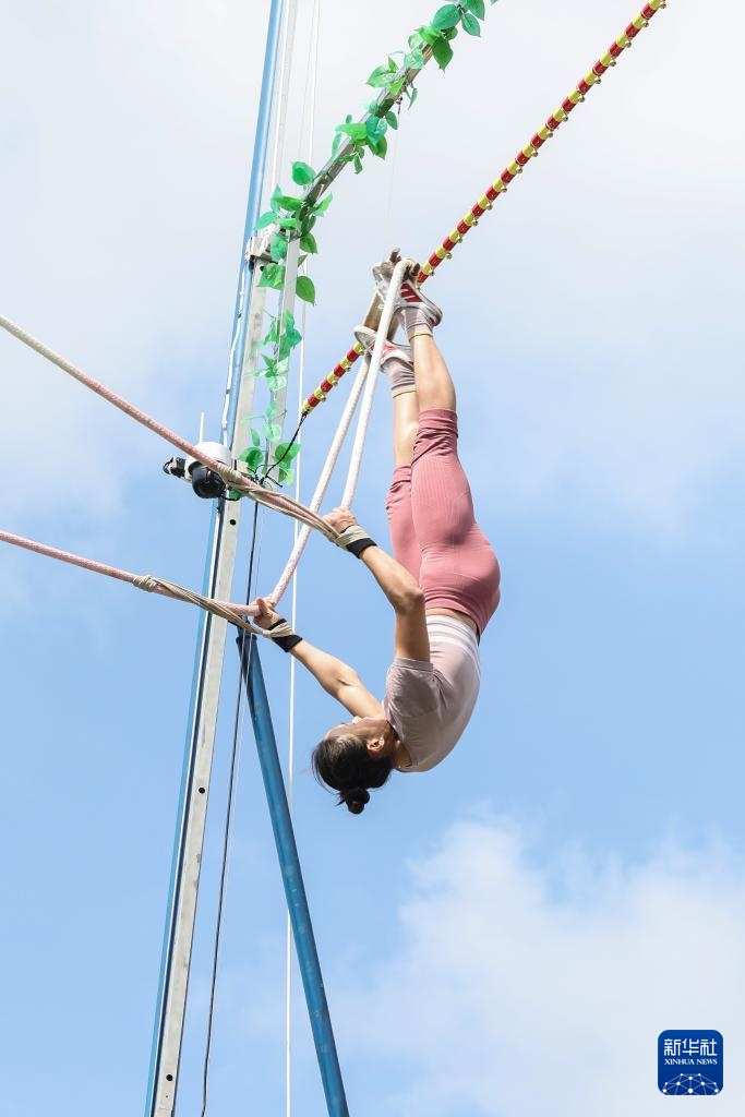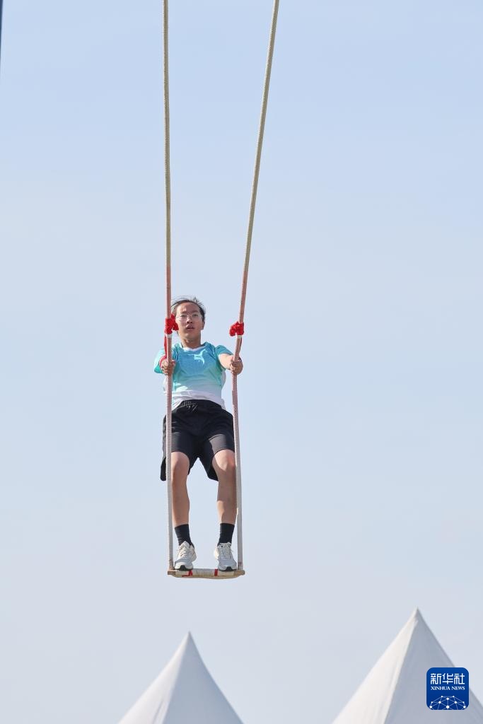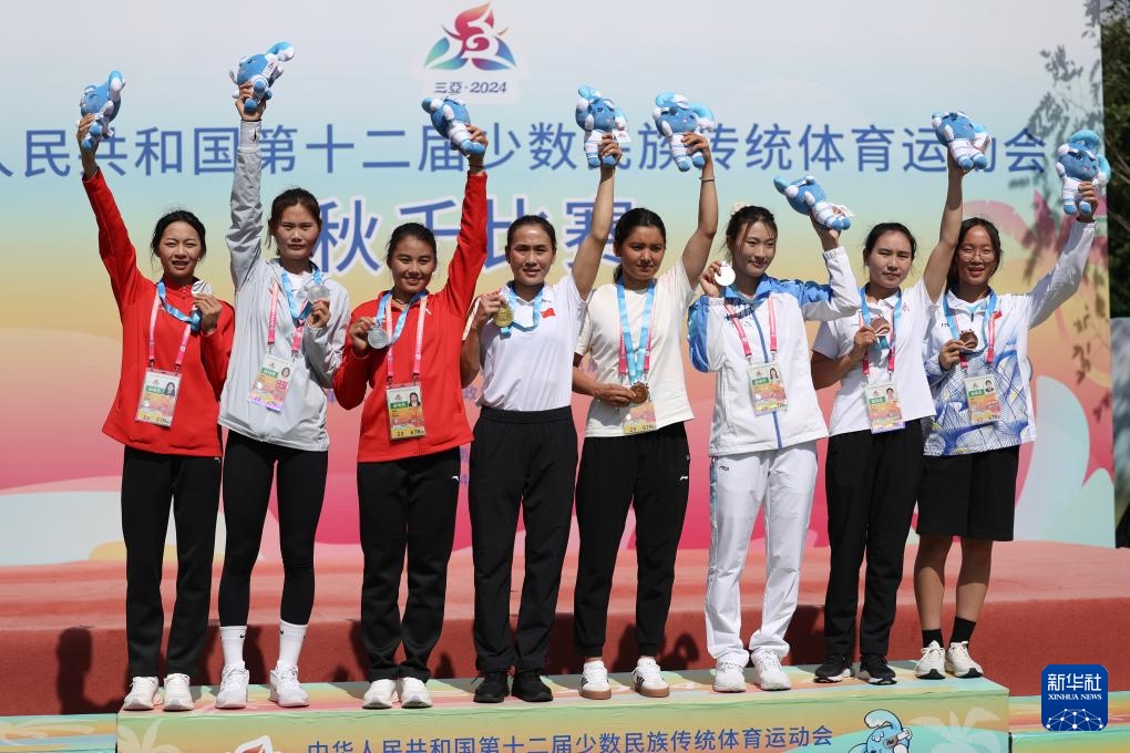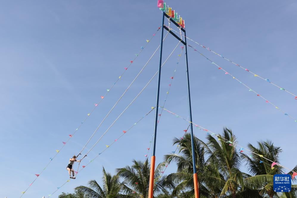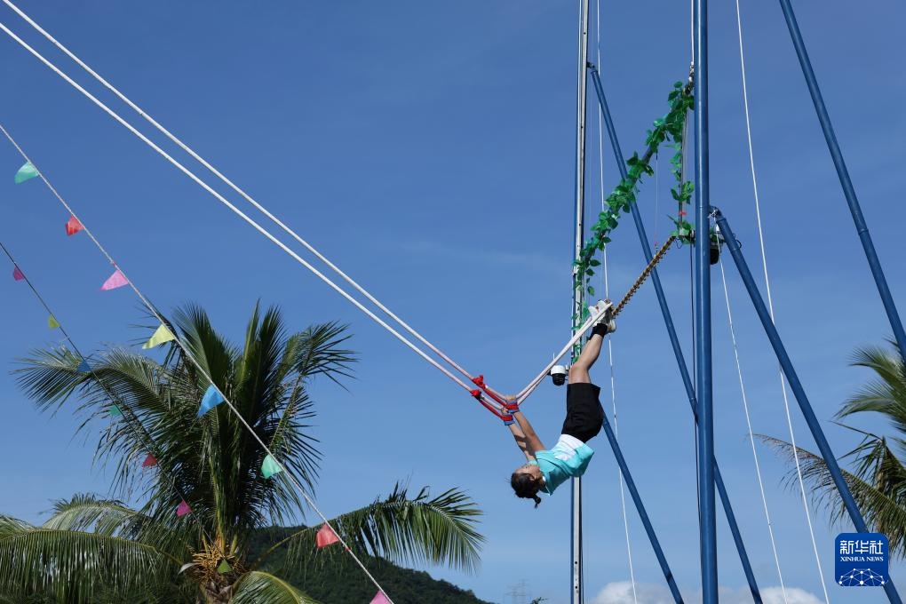 當日,第十二屆全國少數民族傳統體育運動會秋千55公斤單人高度決賽在海南三亞舉行。