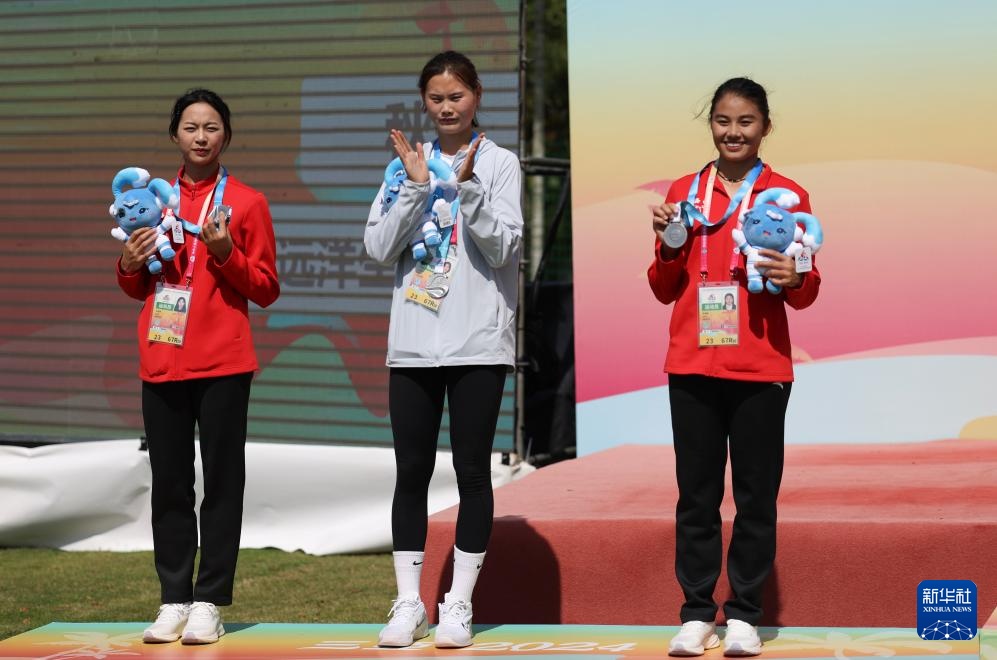 11月27日,獲得二等獎的西藏隊選手許彩香、吉林隊選手鄭佑珍、西藏隊選手羅柳麗(從左到右)在頒獎儀式上合影。