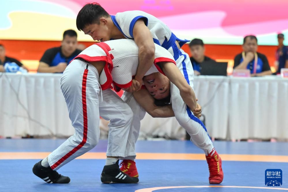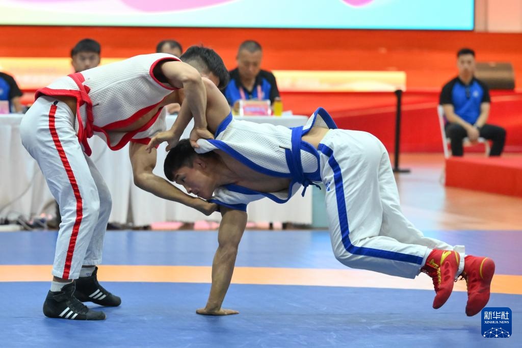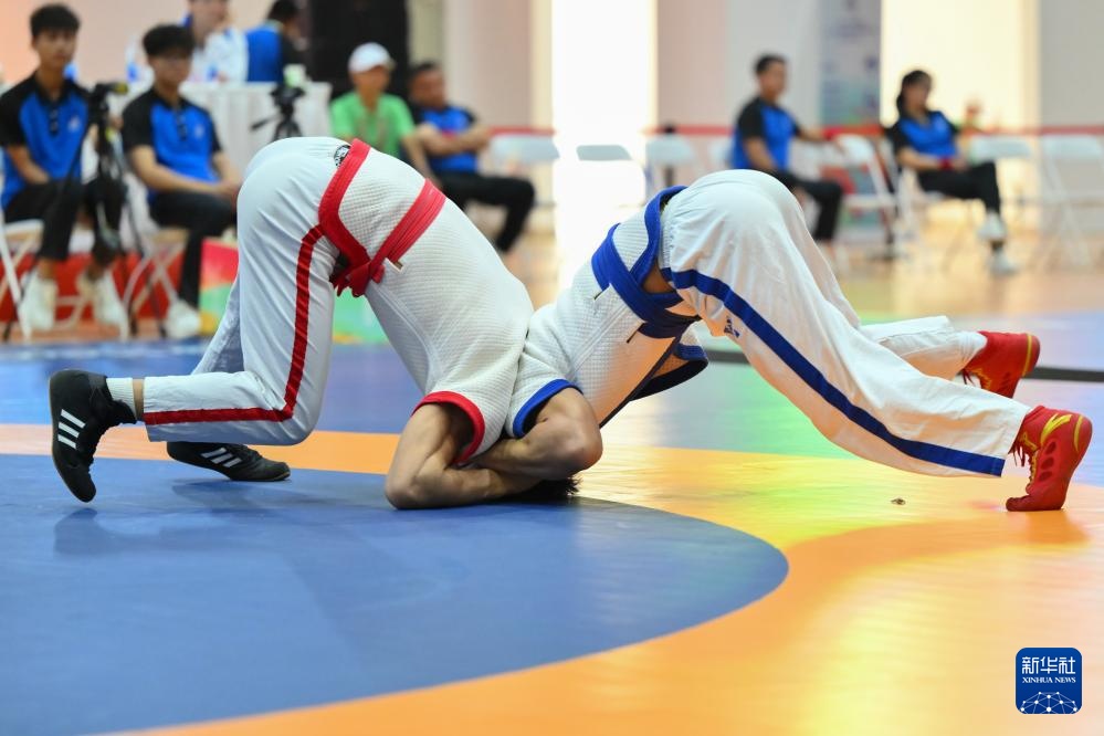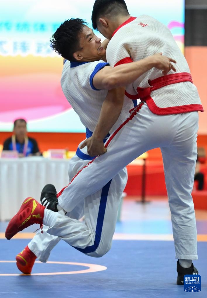 當日,第十二屆全國少數民族傳統體育運動會民族式摔跤在絆跤(回族式摔跤)淘汰賽在海南省三亞市舉行。